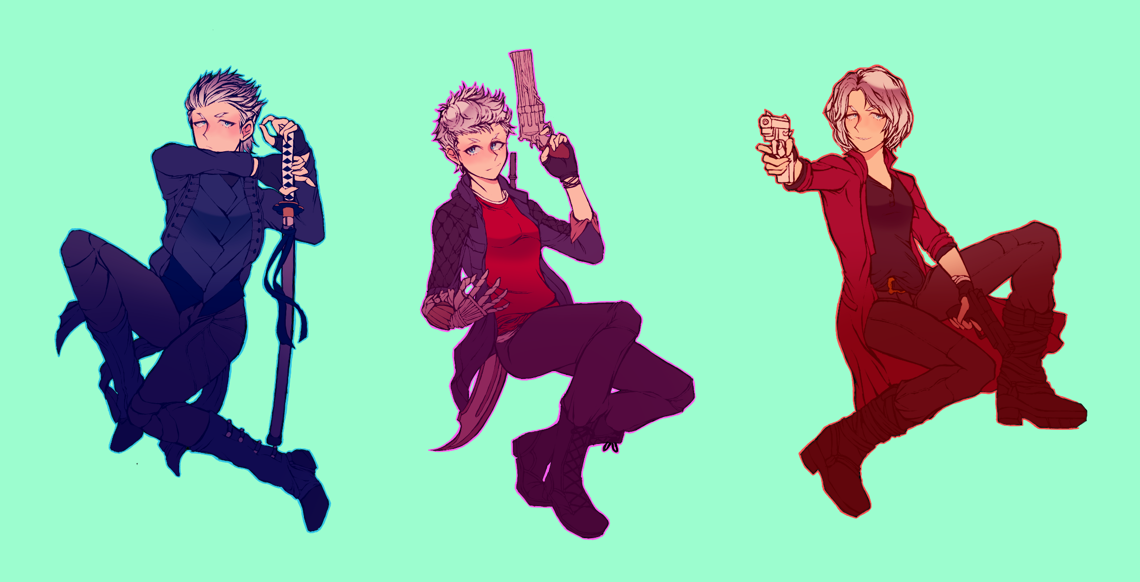 Devil May Cry 5 hanging keychain set featuring: Dante Sparda, Vergil Sparda, and Nero Sparda!